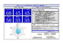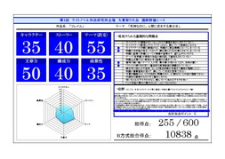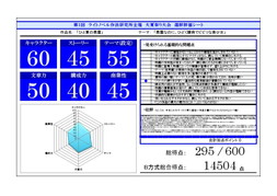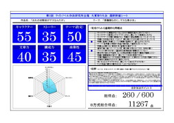 非公開申請がされた評価シートは除外しております。1〜10位に選ばれた作品の評価シートは優秀作品発表のページより閲覧できます。