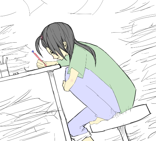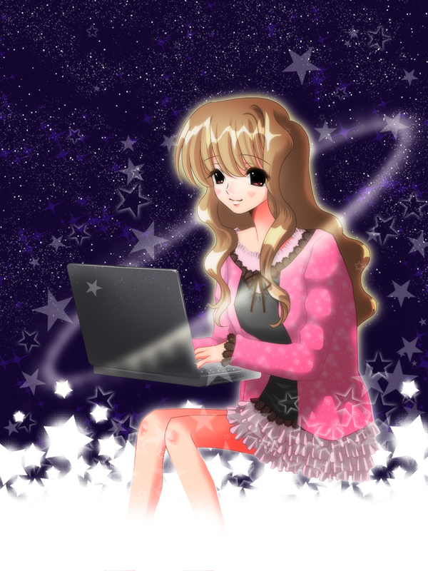 夢中でノベルを書いている少女のイメージで制作しました。 うっぴーさんご所望の「ラノベを書いている美少女」という コンセプトに合っているといいんですか(^_^;)