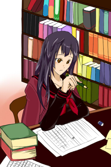 akkです。一枚描いてみました。「ラノベを『書いている』美少女」ではないですね。 きっと普段は書いてるんです。きっと今日は読む日なんです。 ――本当は私がうっかりしてただけですけど……。せっかくなので投下します。絵を描くのも楽しいですね♪
