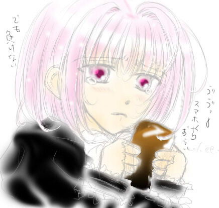 おまけです。書く前にこんなイメージかなと描いてました。後日談になっていて、応募したはいいがスマホで落選を知って半泣きの図です、でも片手には次回作の資料が………。(どうしても萌え絵にならない………)